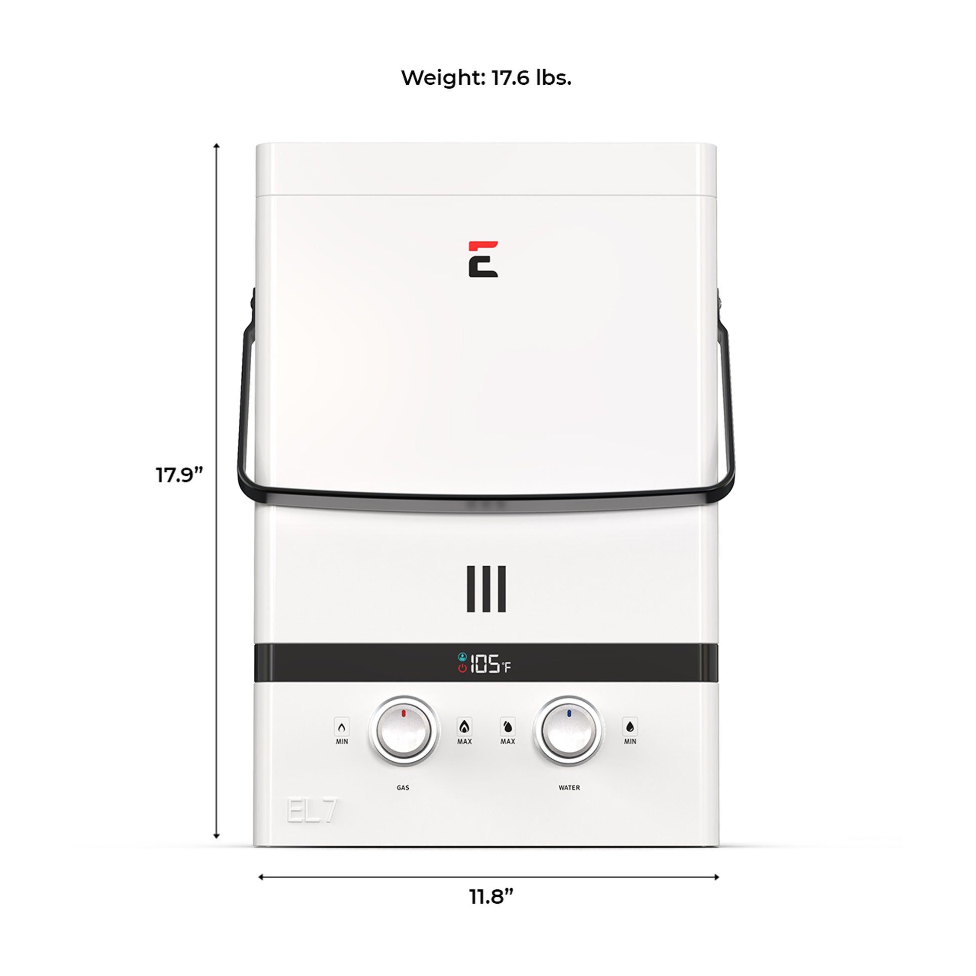 Eccotemp’s Portable Tankless Water Heaters are the number “1” sold and trusted CSA approved portable tankless water heaters in the world. The Eccotemp Luxe EL7 was meticulously designed in Summerville, SC, with quality, features, and price in mind. The Luxe EL7 Portable Tankless Water Heater features an All-Weather Rain Cap and Tri-Coat Pearl White Powder Coat Paint. This gives the Luxe EL7 a beautiful look and feel unlike anything on the market. Our unique steel designed carrying handle adds an element of durability and quality which no other competitor has.