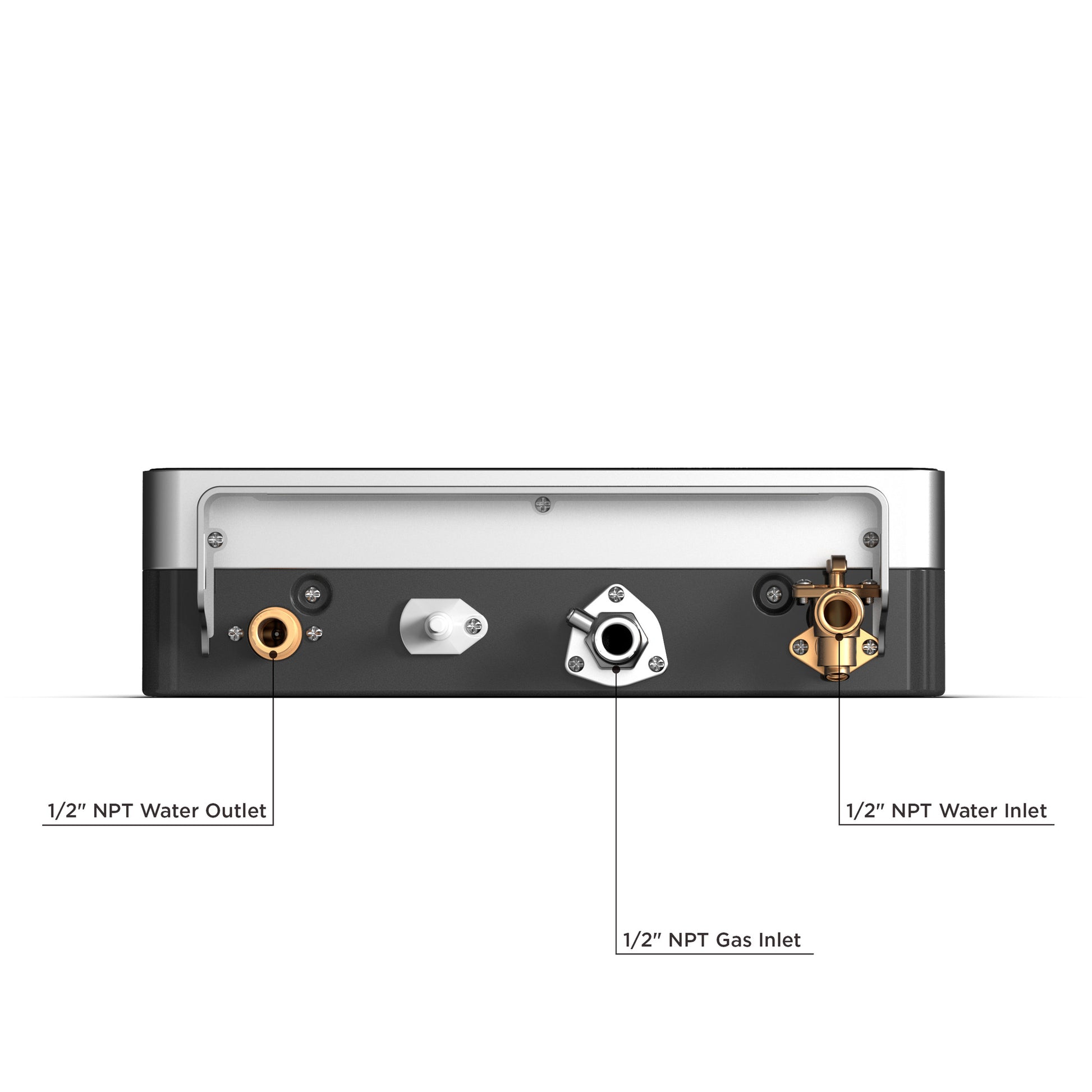 - True 1/2" NPT water fittings